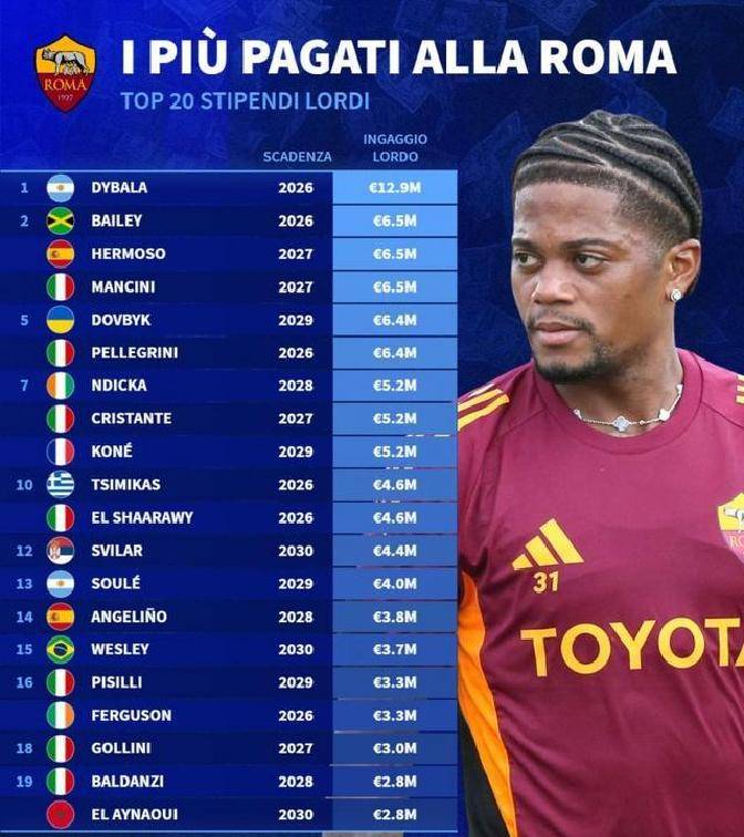 意甲榜首!罗马薪资结构矛盾凸显,加斯佩里尼或调整阵容破困局